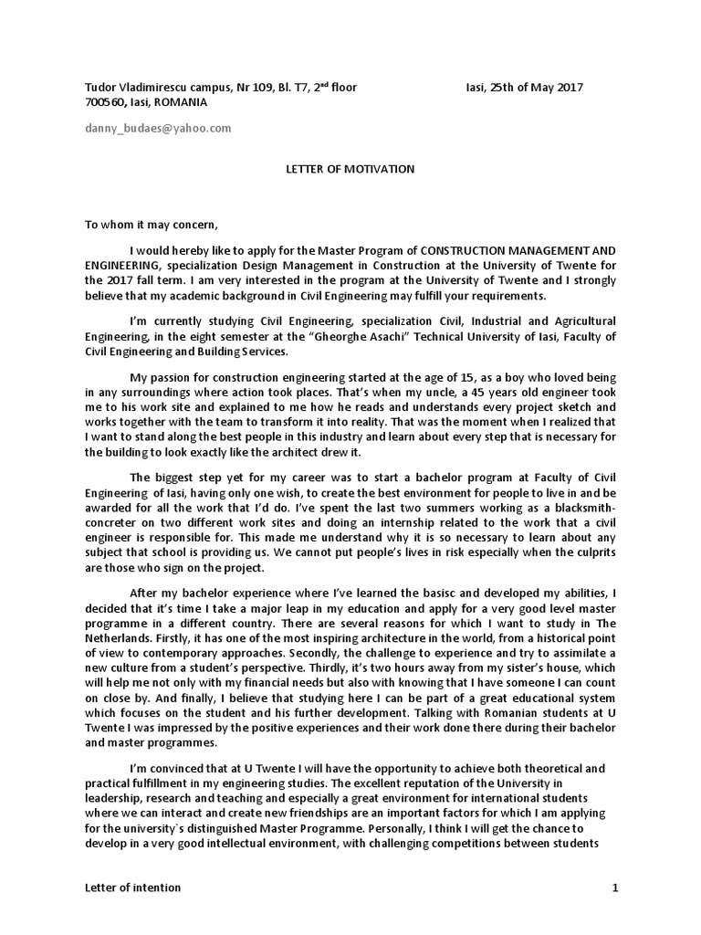 You're a doer more than a talker: As i looked through our correspondence, i noted that this was his 26th. A motivation letter clearly defines the reason you are applying for a particular vacancy, such as an internship, job placement, college or university admission, scholarship, or course of study. It comes under different names: Motivation letter for university application, motivation letter for job and internship.