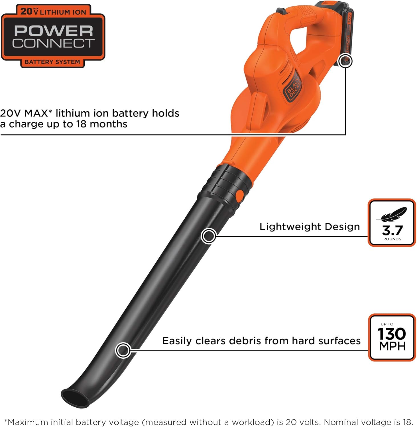 Black and decker lsw20 20 volt lithium ion cordless sweeper this is a lightweight leaf blower from black and decker that is really powerful.