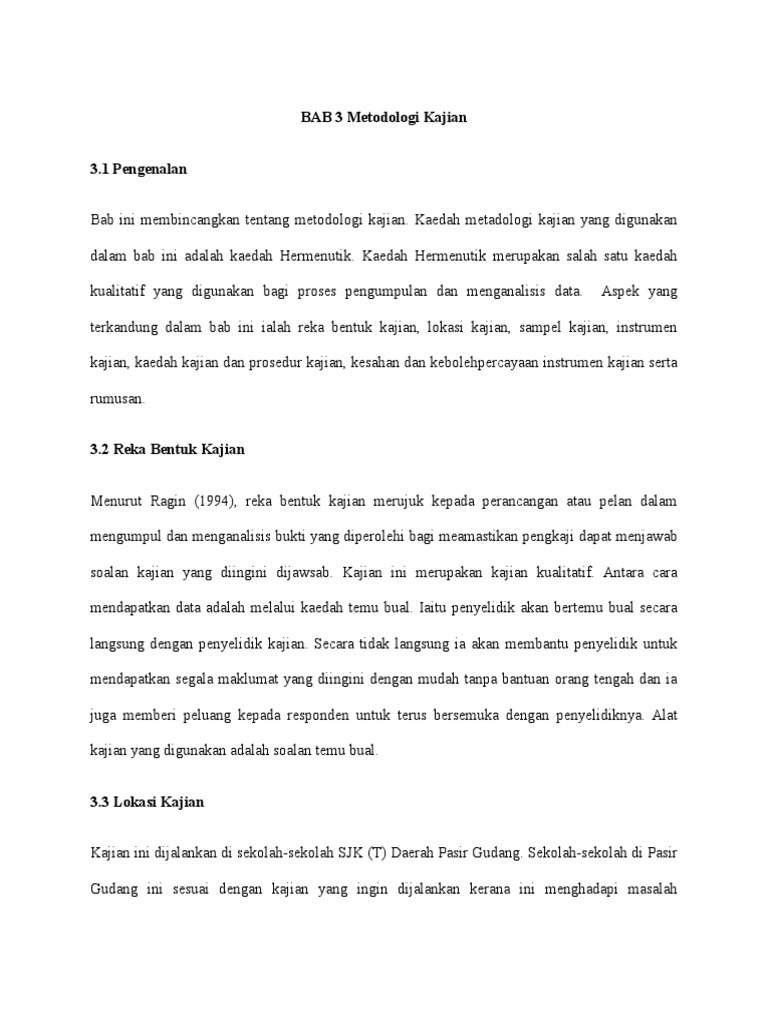 We are a sharing community. Metodologi penelitian yang dikembangkan dalam buku ini lebih bersifat kuantitatif metode pengumpulan data dengan penyu. So please help us by uploading 1 new document or like us to download Metodologi kajian 3.1 pengenalan 3.2 prosedur kajian 3.3 reka bentuk kajian 3.3.1 temu bual 3.3.2 tinjauan awal 3.4 data dan pemilihan sampel kajian 3.5 kajian rintis 3.6 instrumen kajian 3.6.1 soal selidik 3.6.2 pemerhatian 3.6.3 prosedur temu bual 3.6.4 pengumpulan data 3.7. Gaung persada, 2009) cet.1 h.